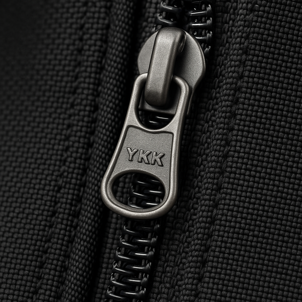 YKK® coil zipper with a DWR (Durable Water Repellent) coating applied to the zipper tape.